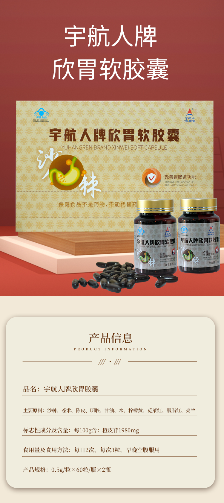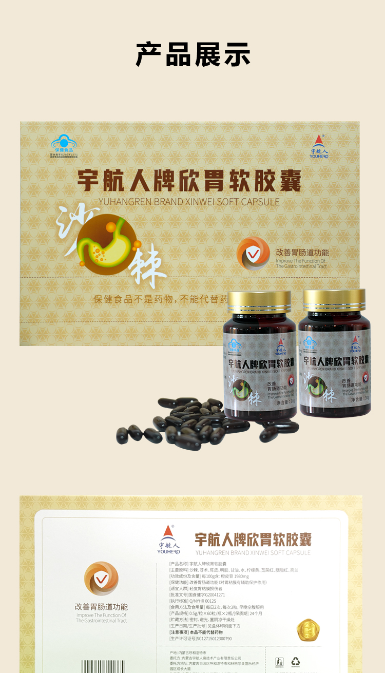 商品名称:宇航人欣胃软胶囊